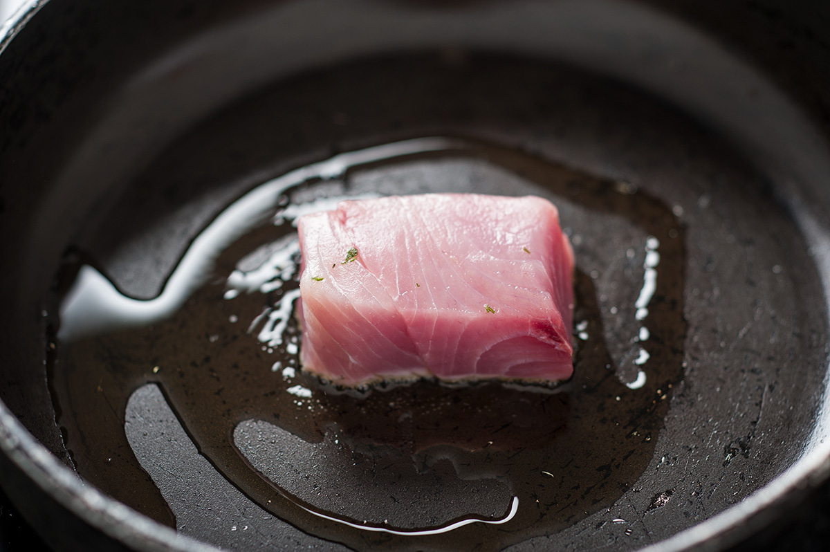 Un tripudio di sapori e profumi per celebrare la freschezza e i sapori del mare e dell’Etna in estate. Il sapore della ricciola viene esaltato dall’aroma inconfondibile del limone verdello, dalla delicatezza del porro e dal gusto del basilico.